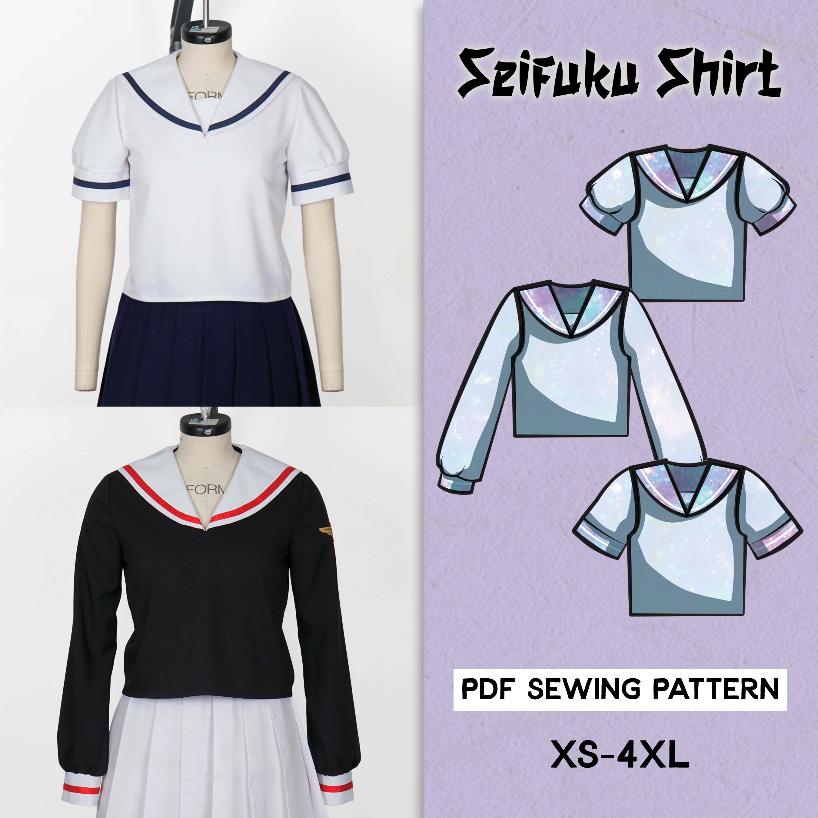Seifuku Shirt Sewing Pattern/Downloadable PDF and Tutorial Book