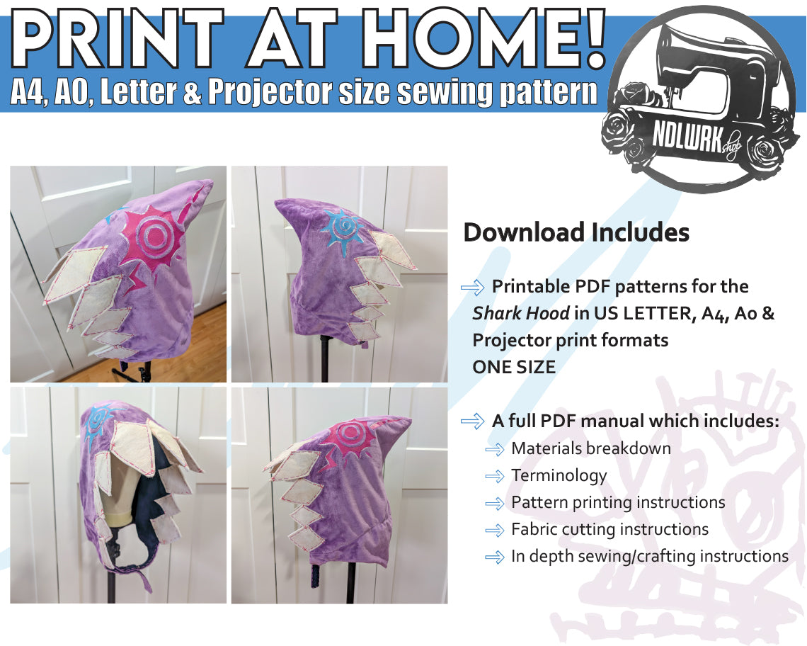 Shark Hood Sewing Pattern/Downloadable PDF File and Tutorial Book